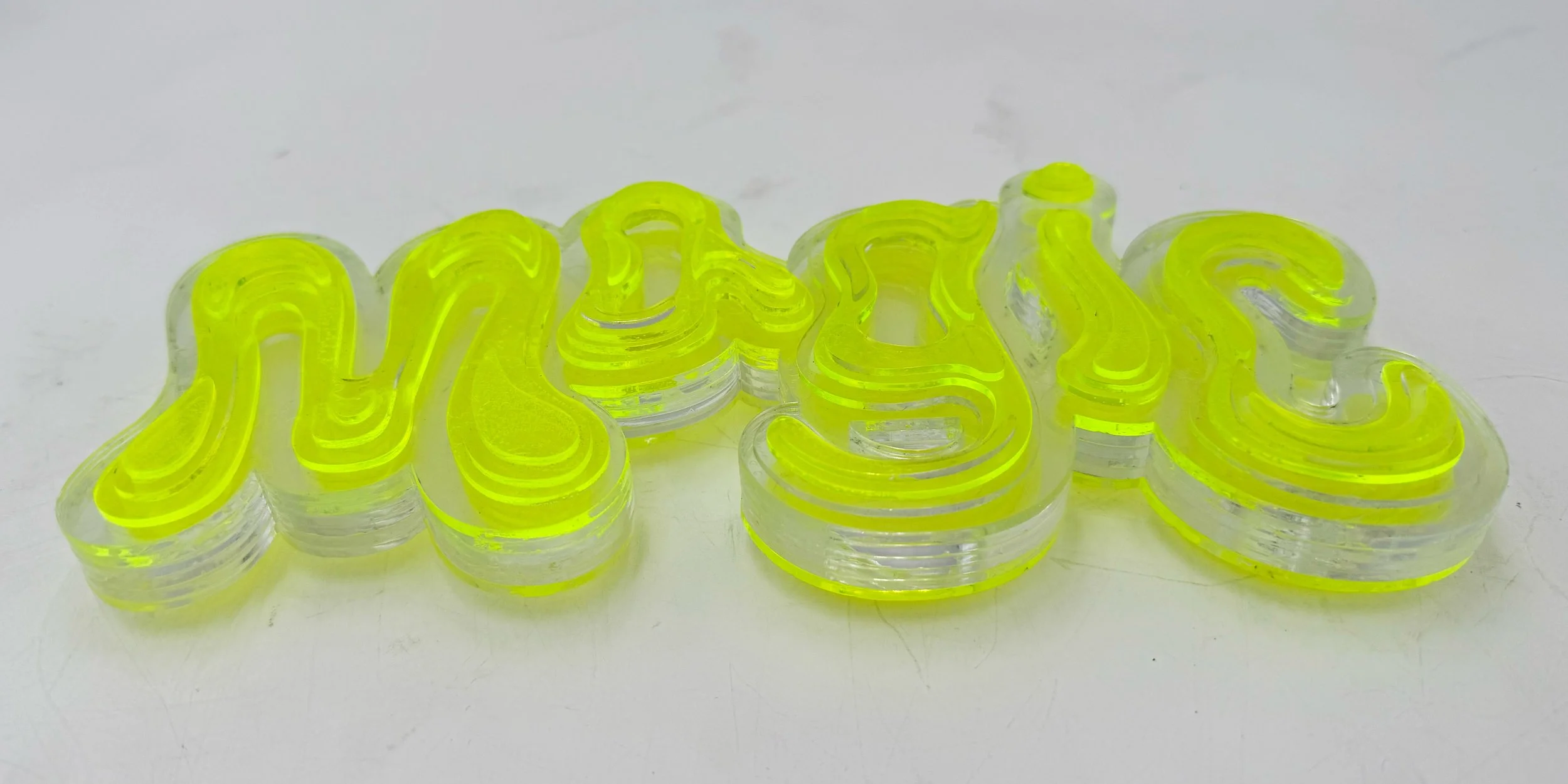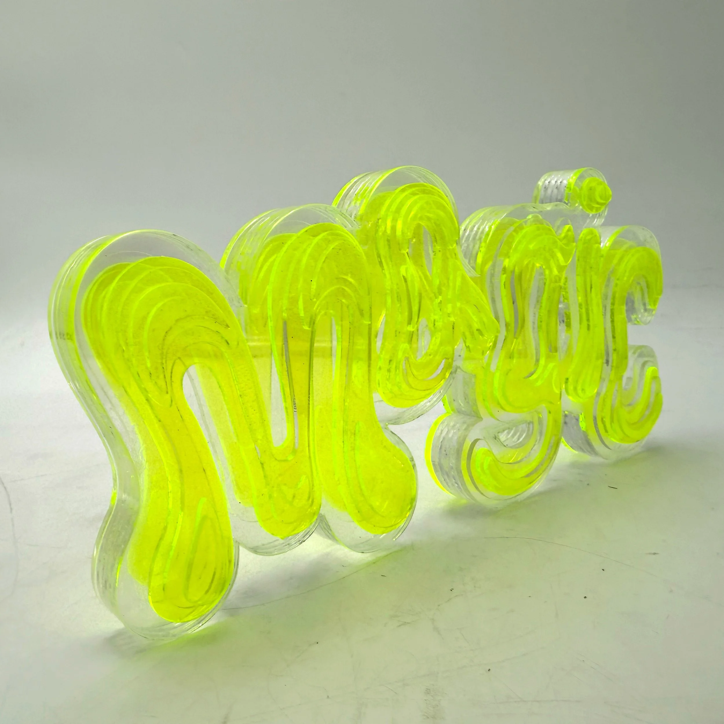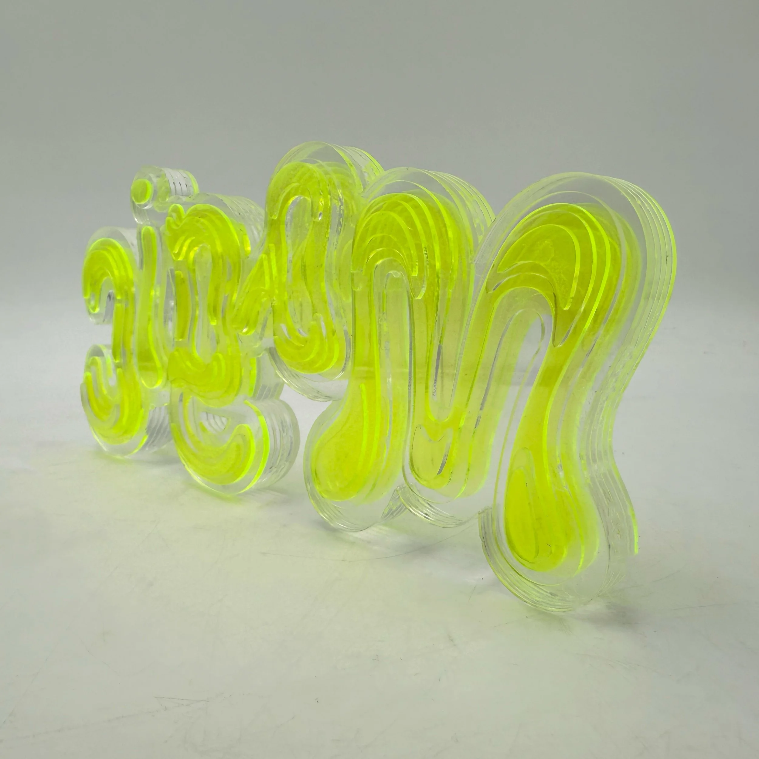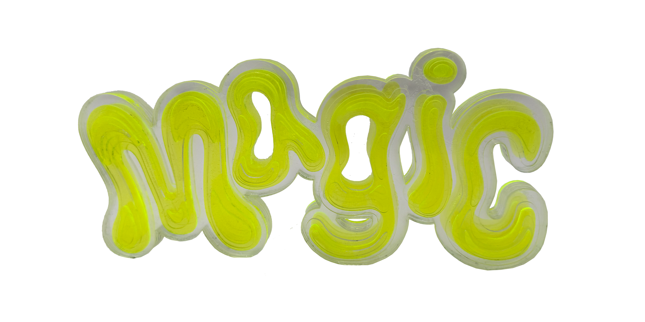 For the 3D Translation, I created a sculptural piece composed of chemically bonded acrylic. I explored the contrast between acrylic’s rigid, industrial nature and the soft, bulbous curves of the Magic Tree font. Through layered geometry, the piece demonstrates how curves can be suggested and constructed through stacked, angular forms rather than continuous surfaces.