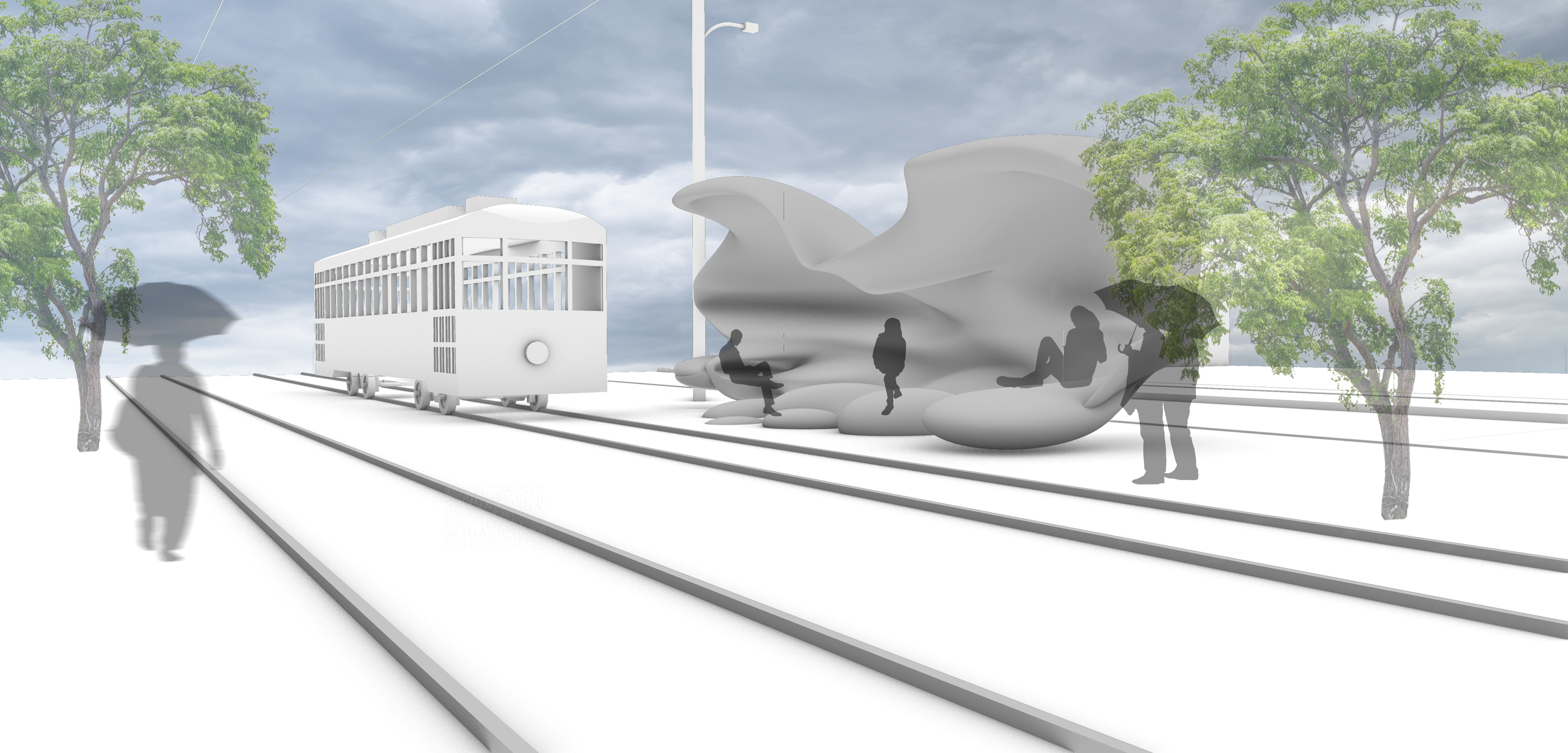 The Wave Form Pavilion is a sculpture space and thought piece based idea that “New Orleans will be underwater by 2050.” The pavilion’s design features a organic shape that form as a wave, creating a sensation of being underwater. To provide that sensation the citizens will experience it through sound, the tight space, and a changing elevations. The pavilion will offer a reminder and reflection on the reality of a disturbing possible future that awaits us.